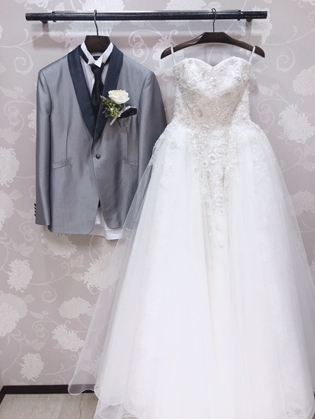 そんなドレスに合わせて、タキシードは柔らかい印象のある「シルバーグレー」を選んでみてはいかがでしょうか。