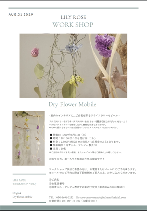 そんなドライフラワーを使ったモビールのワークショップを開催致します。