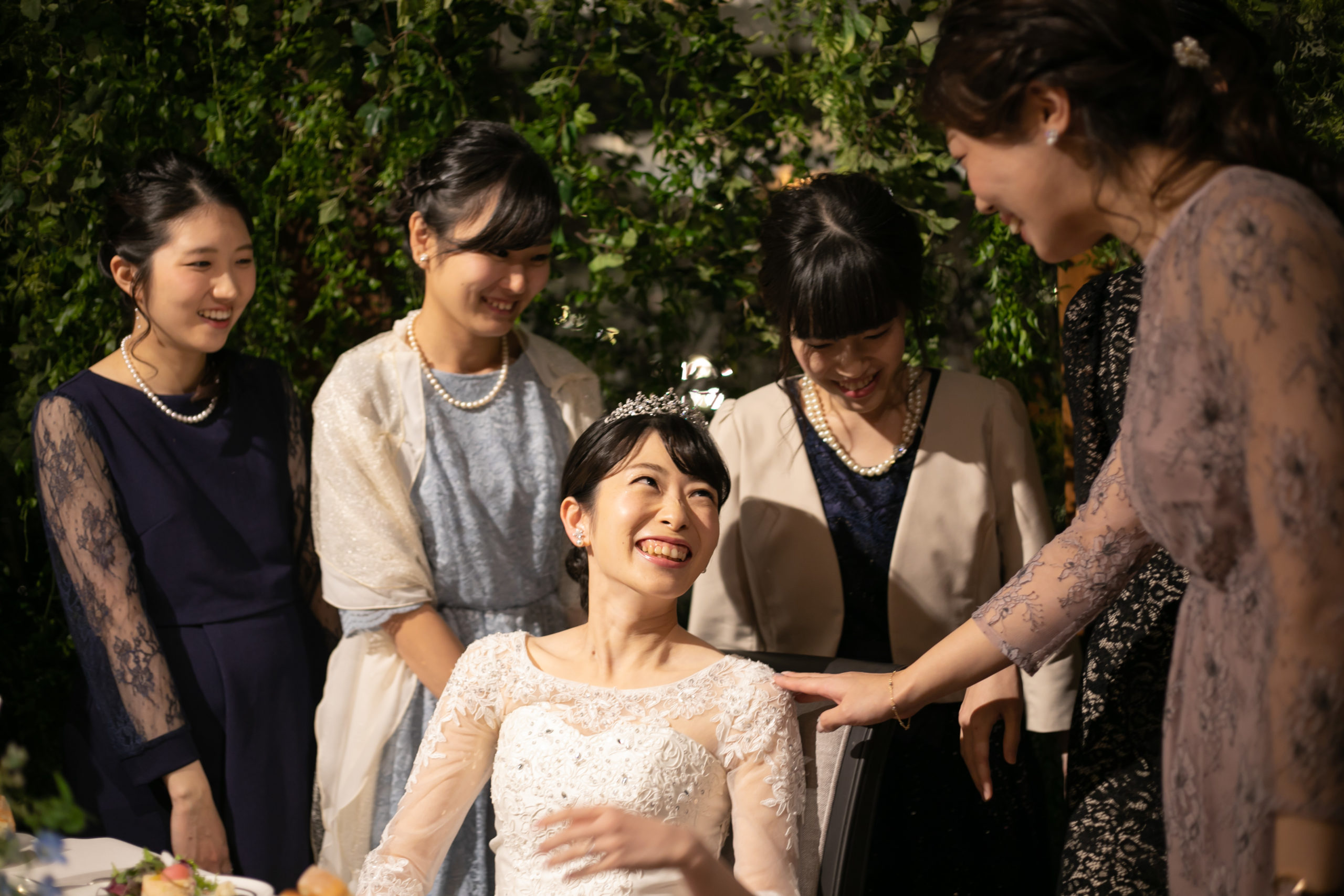 仲の良いご友人様に囲まれ、幸せそうなお二人