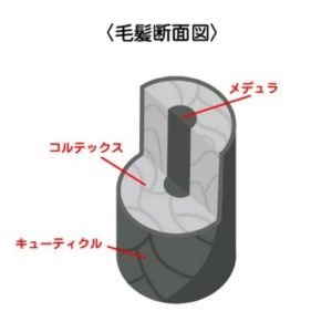 髪表面は、「キューティクル」と呼ばれるうろこ状のタンパク質で覆われています。