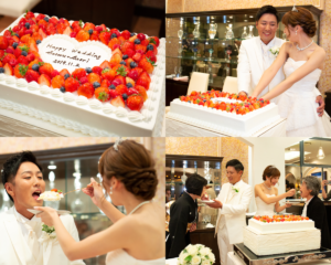 ベリーをふんだんに敷き詰めたかわいらしいウエディングケーキをご用意し