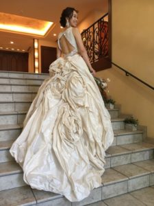 背中が大胆に開いていてバルーン型のスカートもとってもかわいかったです。