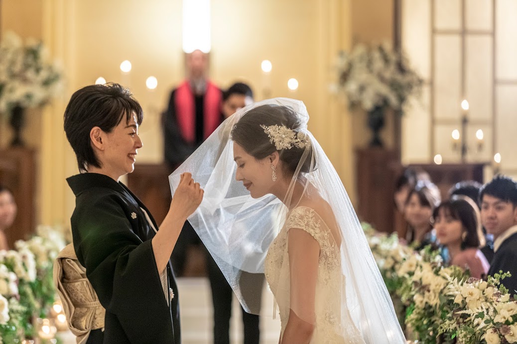 その後、花婿様にベールアップを行っていただき『これからは僕が守っていきます』といった決意表明となります