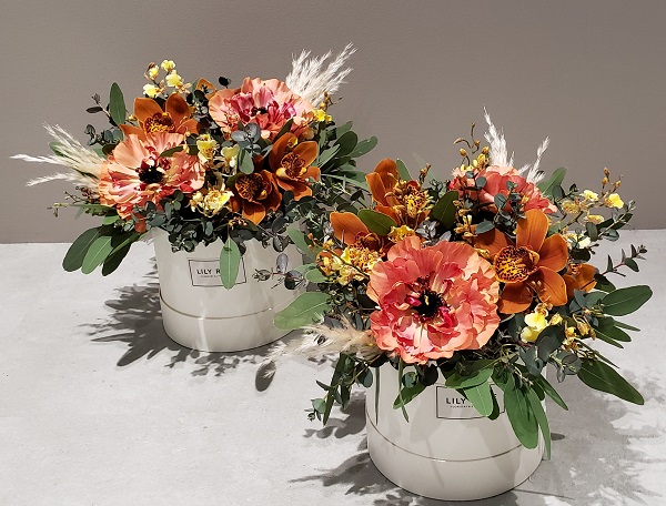 最近は落ち着いたオレンジや茶色いお花が増えてきており、