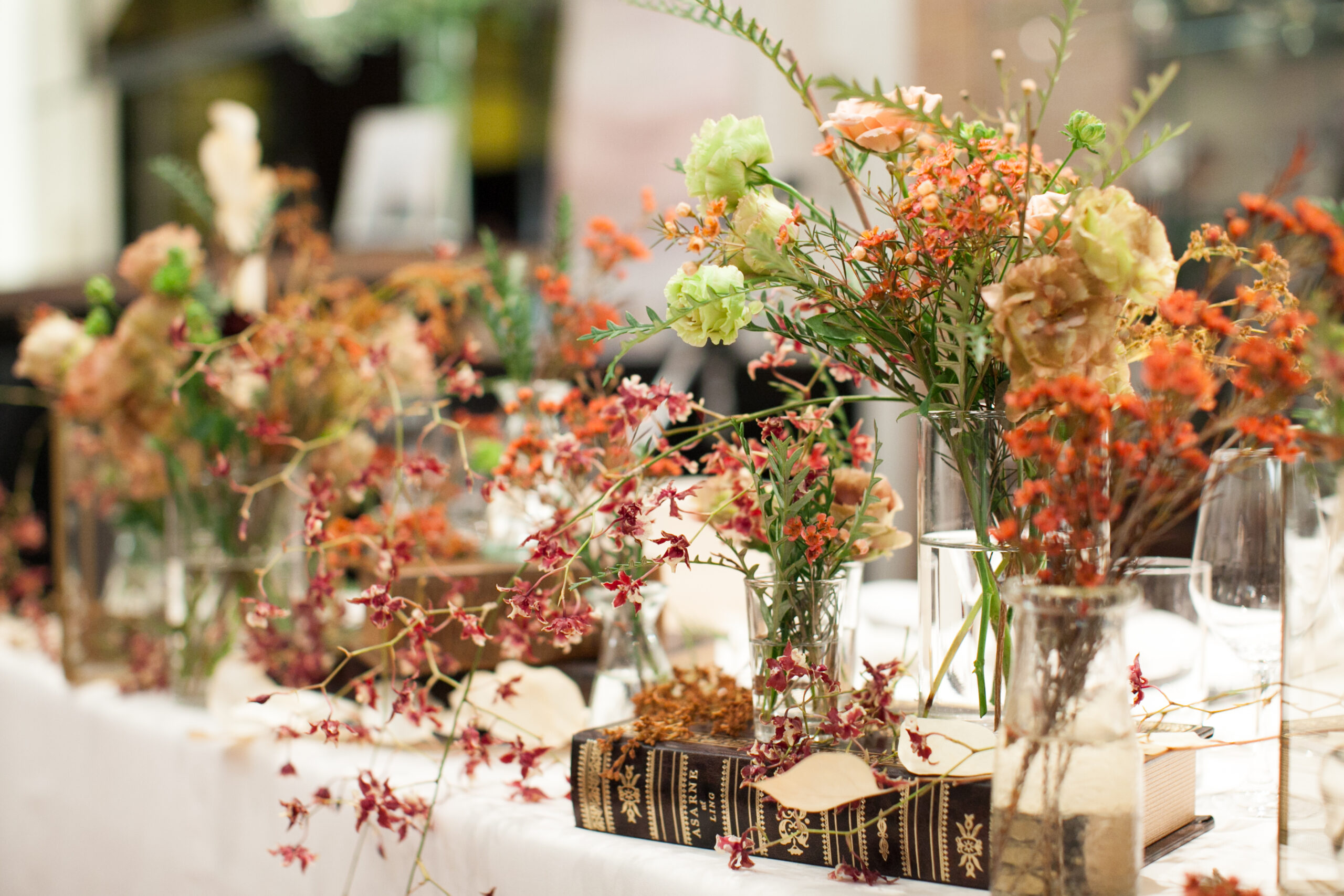 本のオブジェを使ってお花を飾るコーディネートは