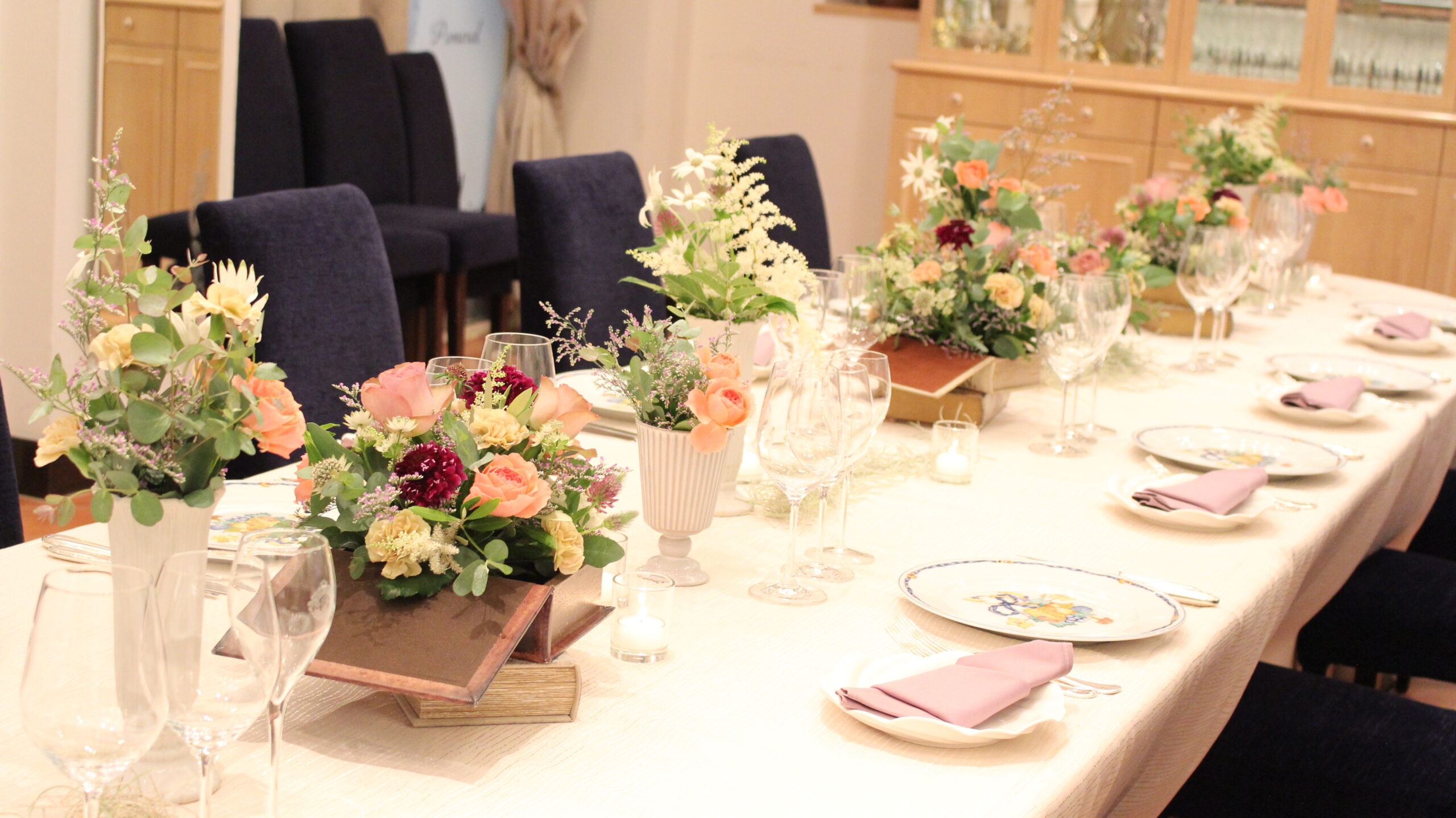 このように少しでも季節のお花や、季節感のあるアイテムを取り入れて