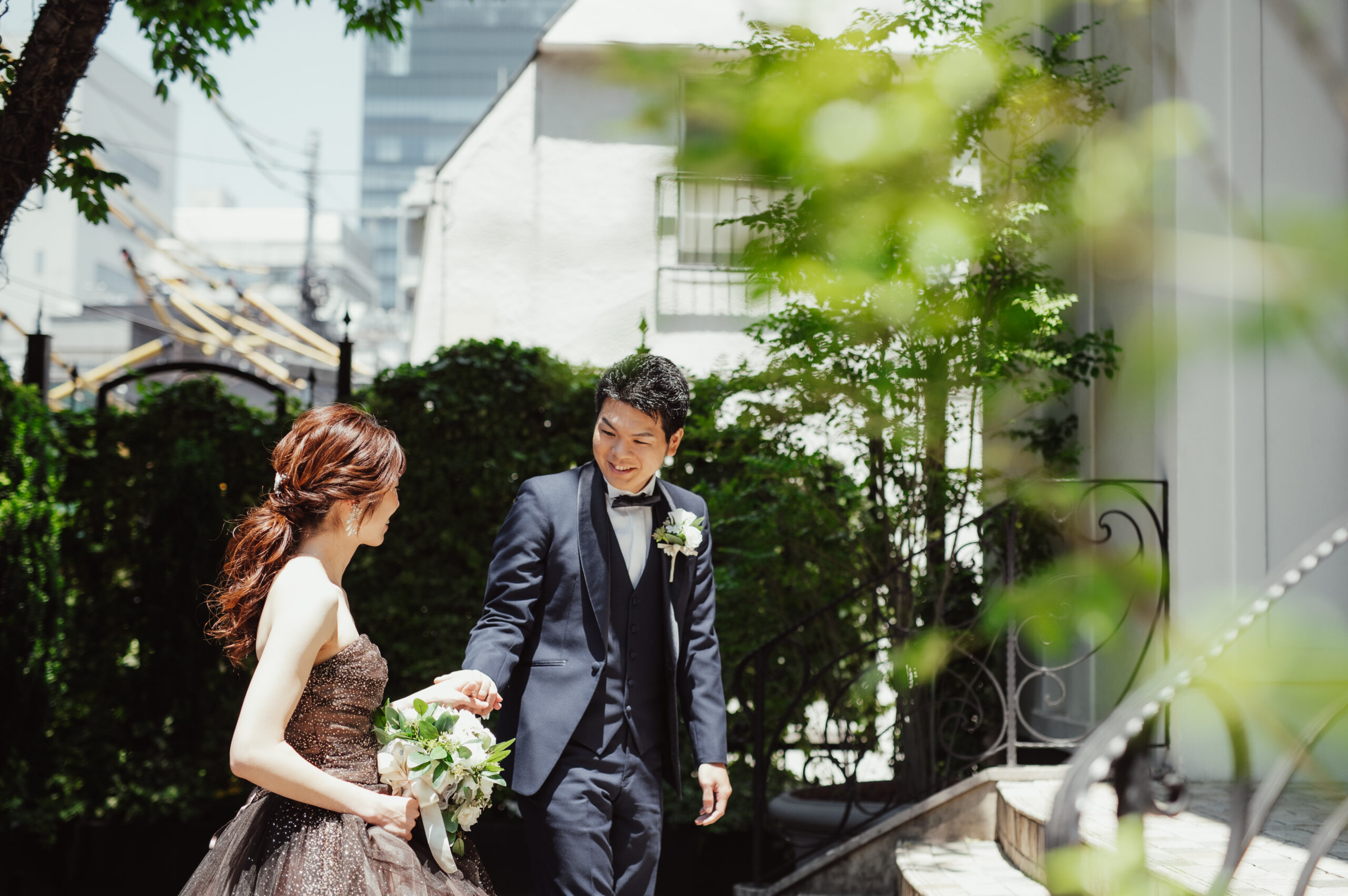 お色直し後には少し雰囲気を変えて外でも撮影しました。