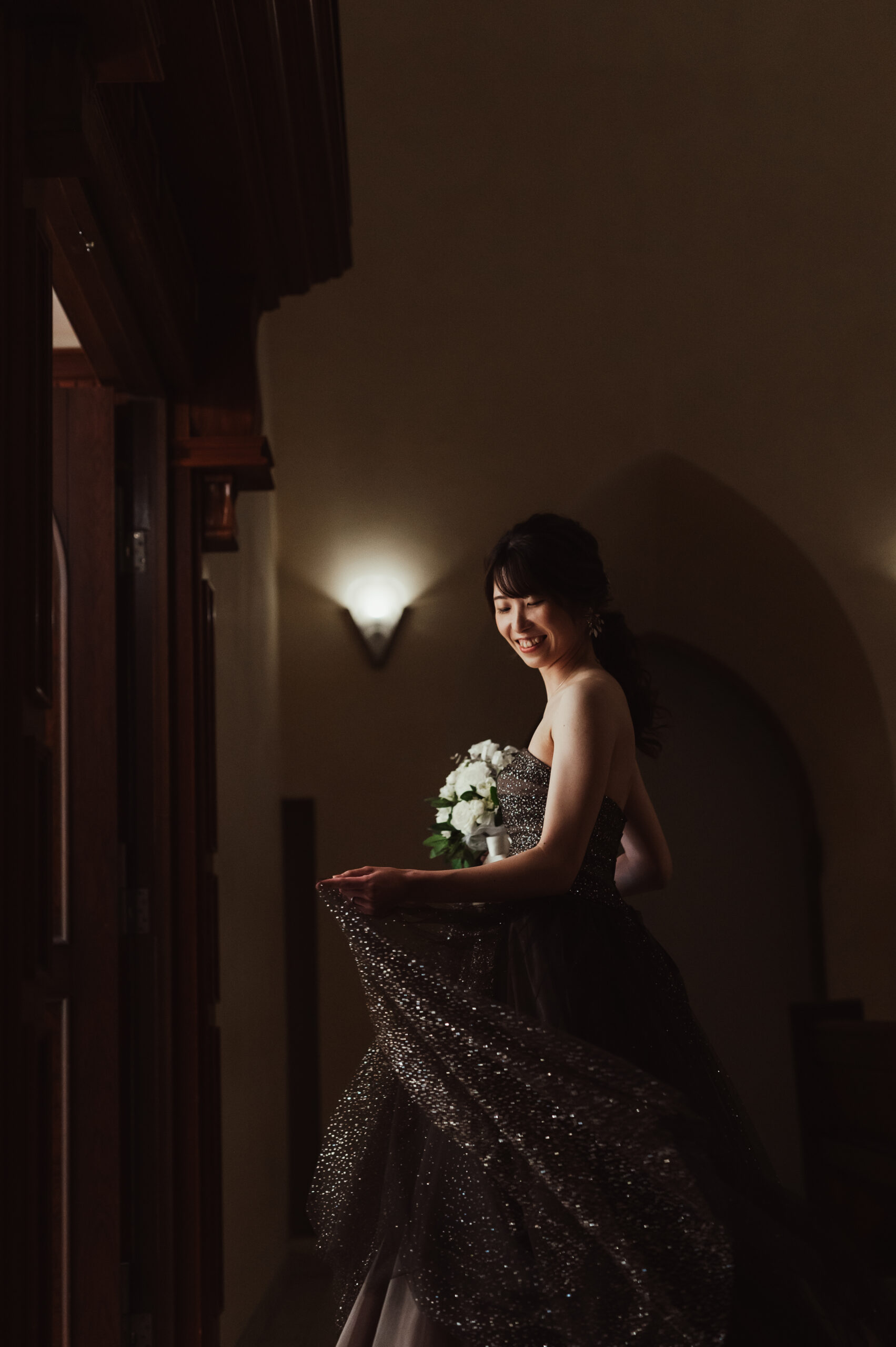ご新婦様はドレスのキラキラが目立つように躍動感もつけて撮ってみました!