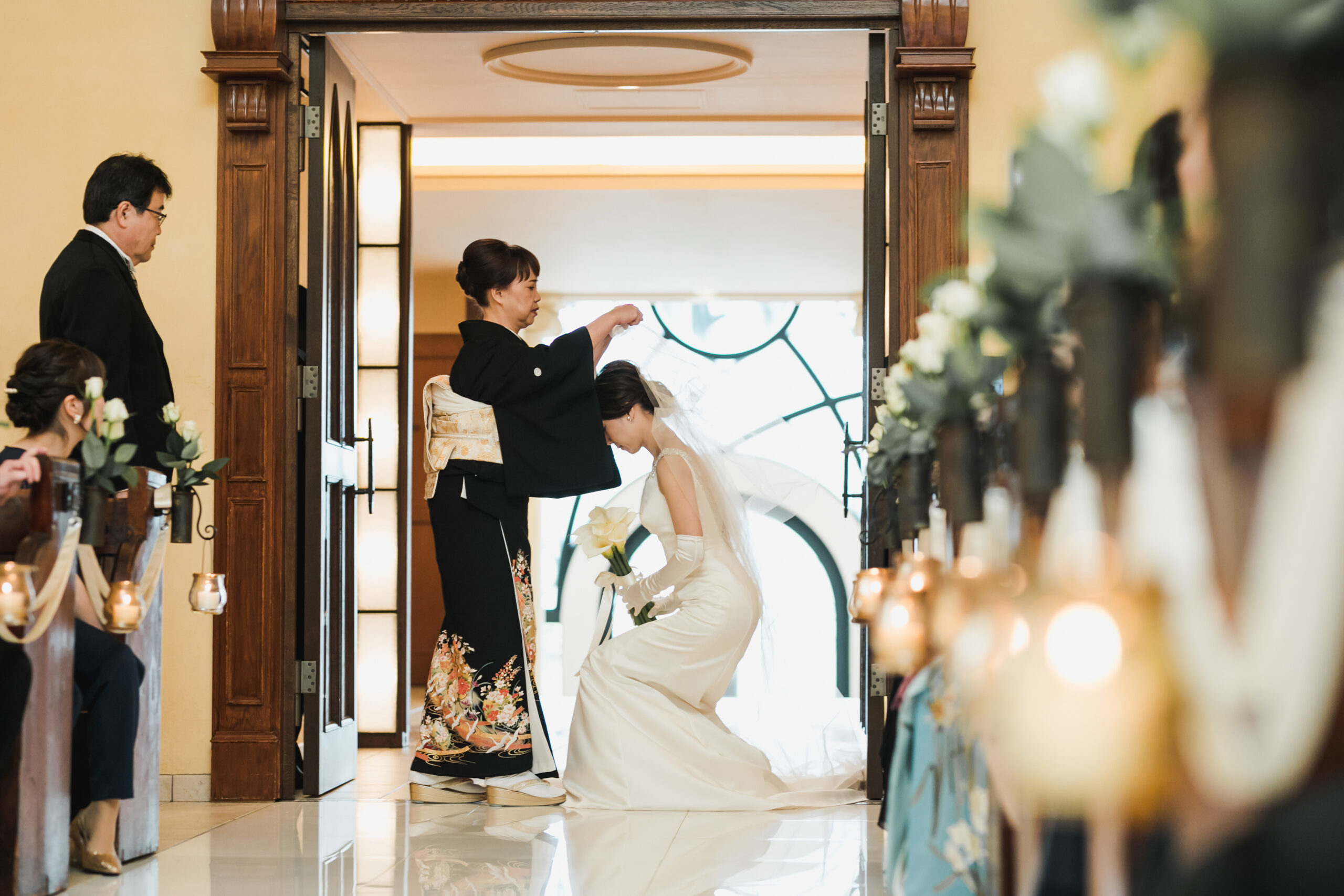 新婦様のお控室にてベールダウンを行う方もいらっしゃいますので