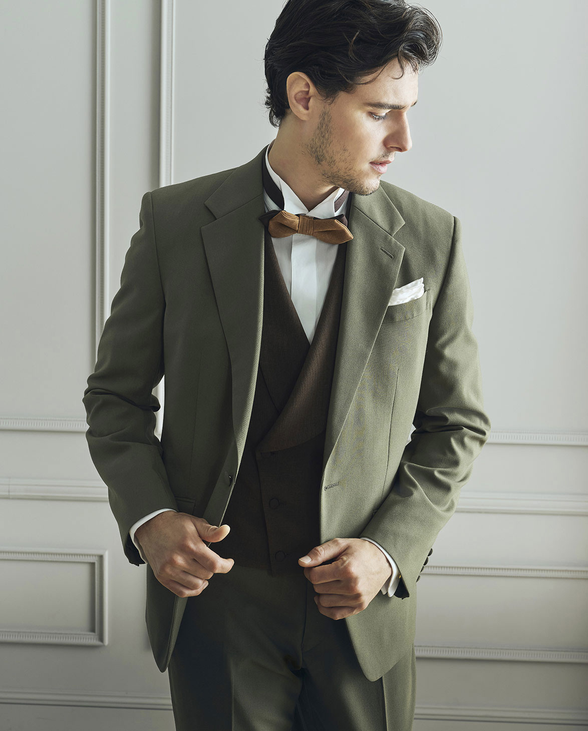 ブラウンのベストと蝶ネクタイがカラーアクセント!