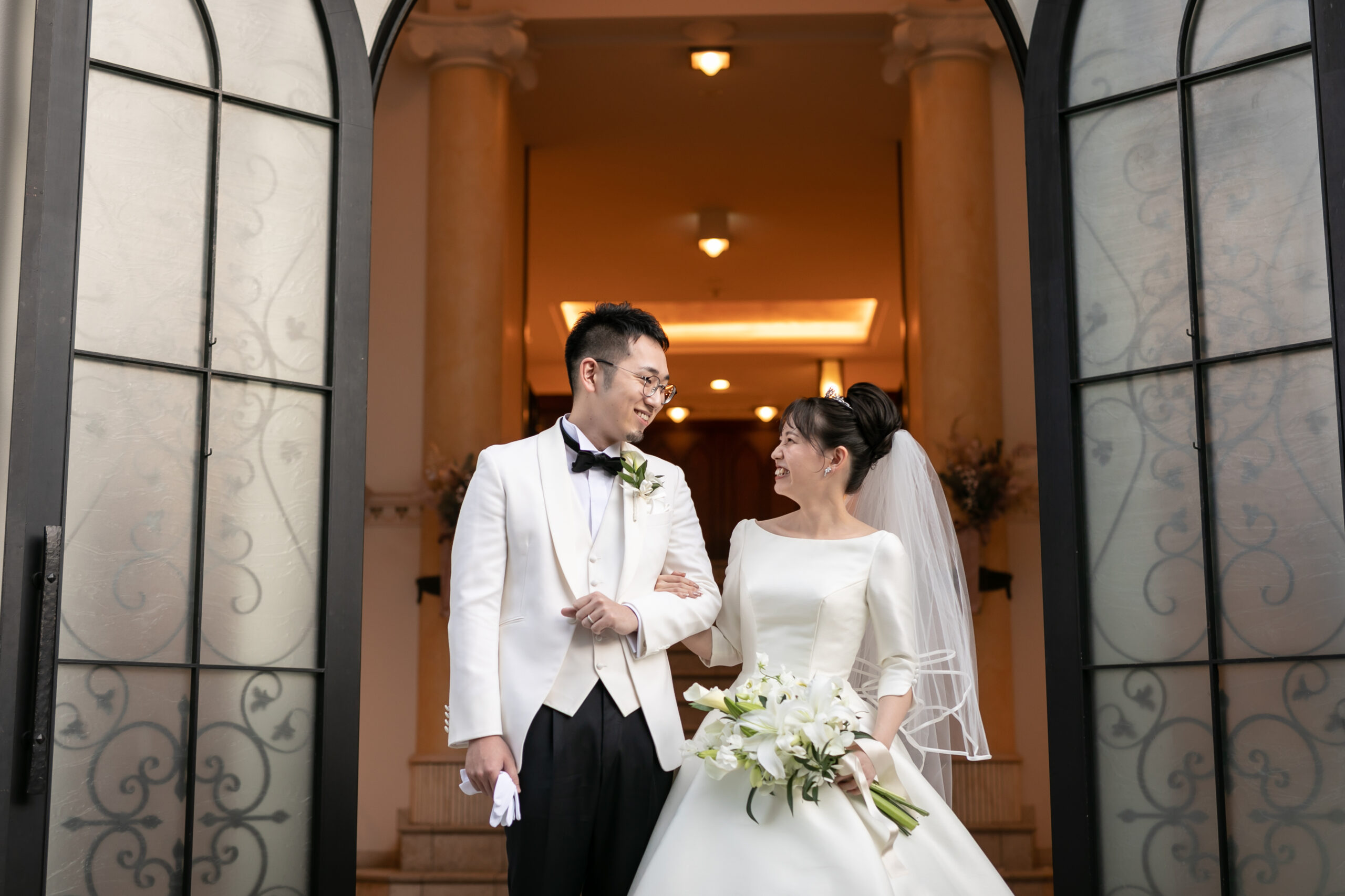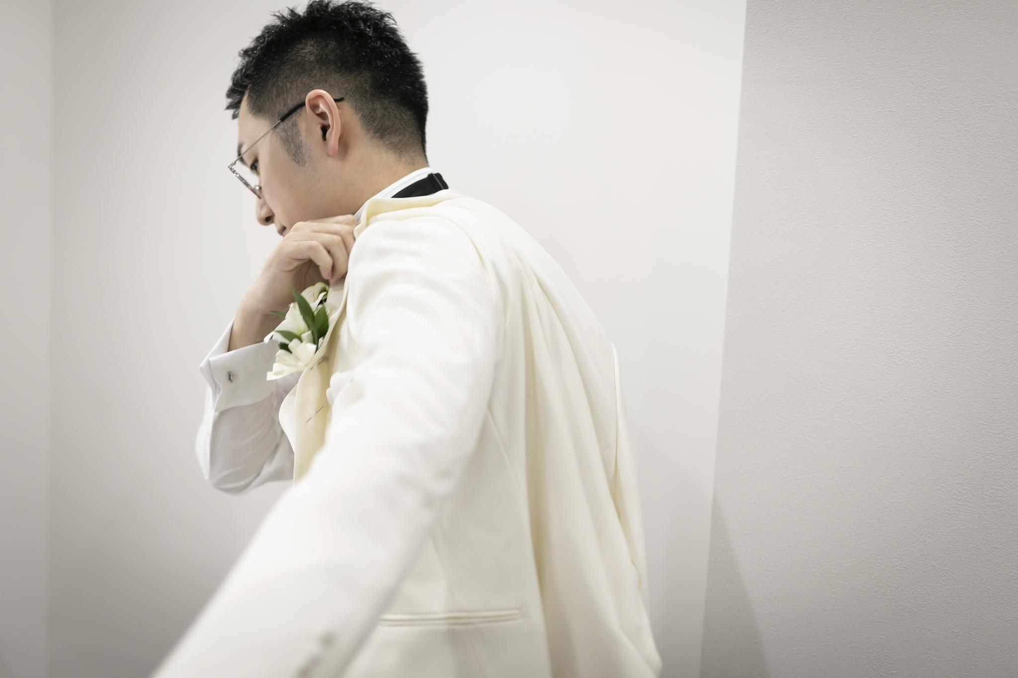 タキシードを羽織り、いざご入場の扉へと向かわれます