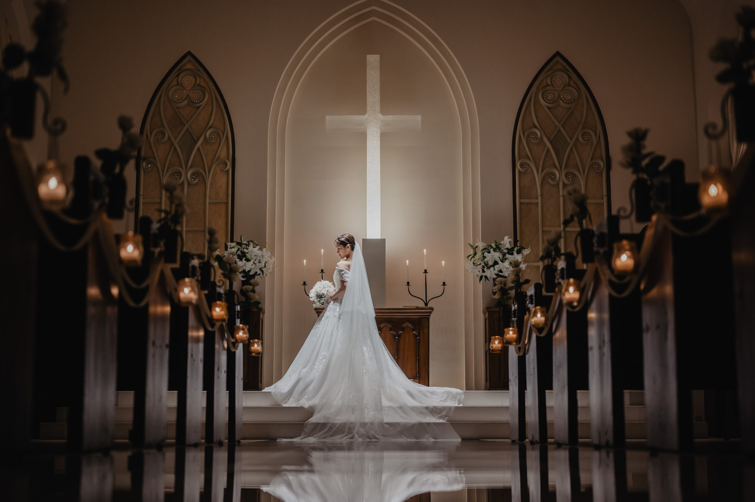 大理石のヴァージンロードに反射した
