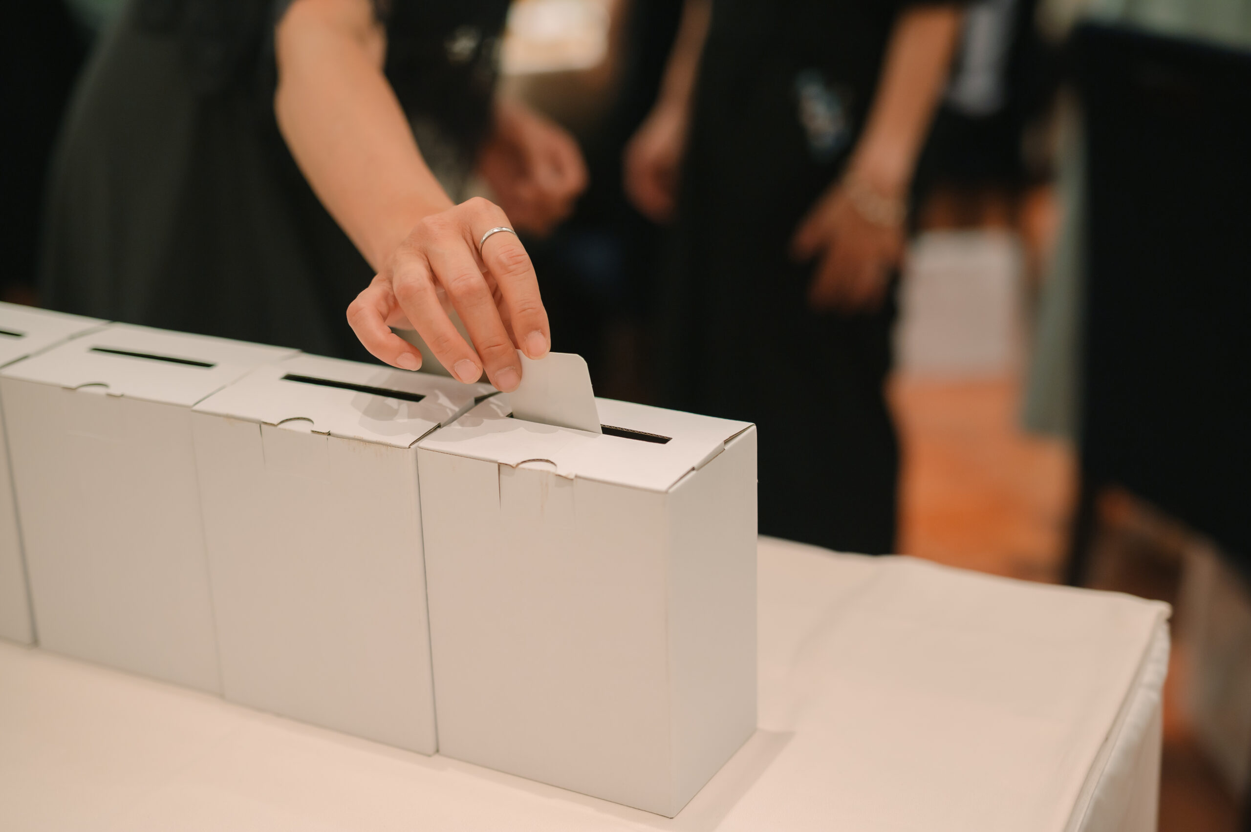 おふたりのご入場をお待ちいただくお時間には、可愛いお写真のついた投票箱を並べ