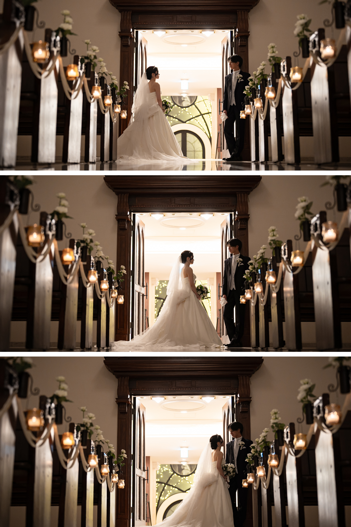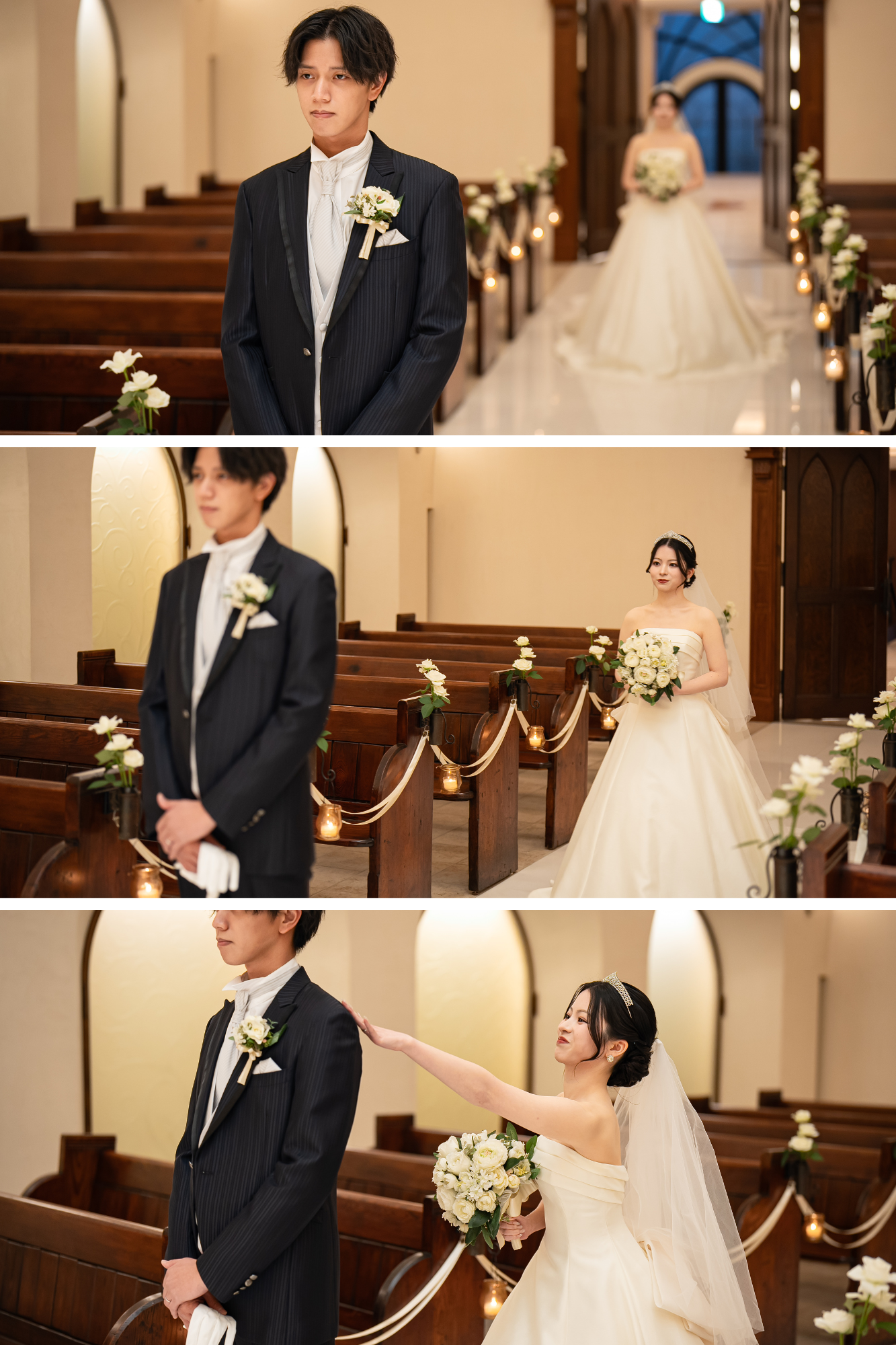 まずは新郎様、続いて新婦様がゆっくりとご入場され、新郎様が振り返った瞬間がファーストミートです!