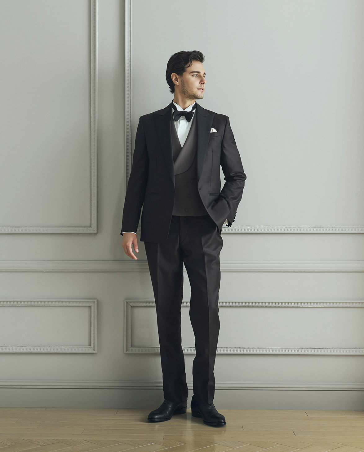 ドーメル社の魅力そのものといえる”アマデウス生地”でお仕立てした高級感漂うタキシードです