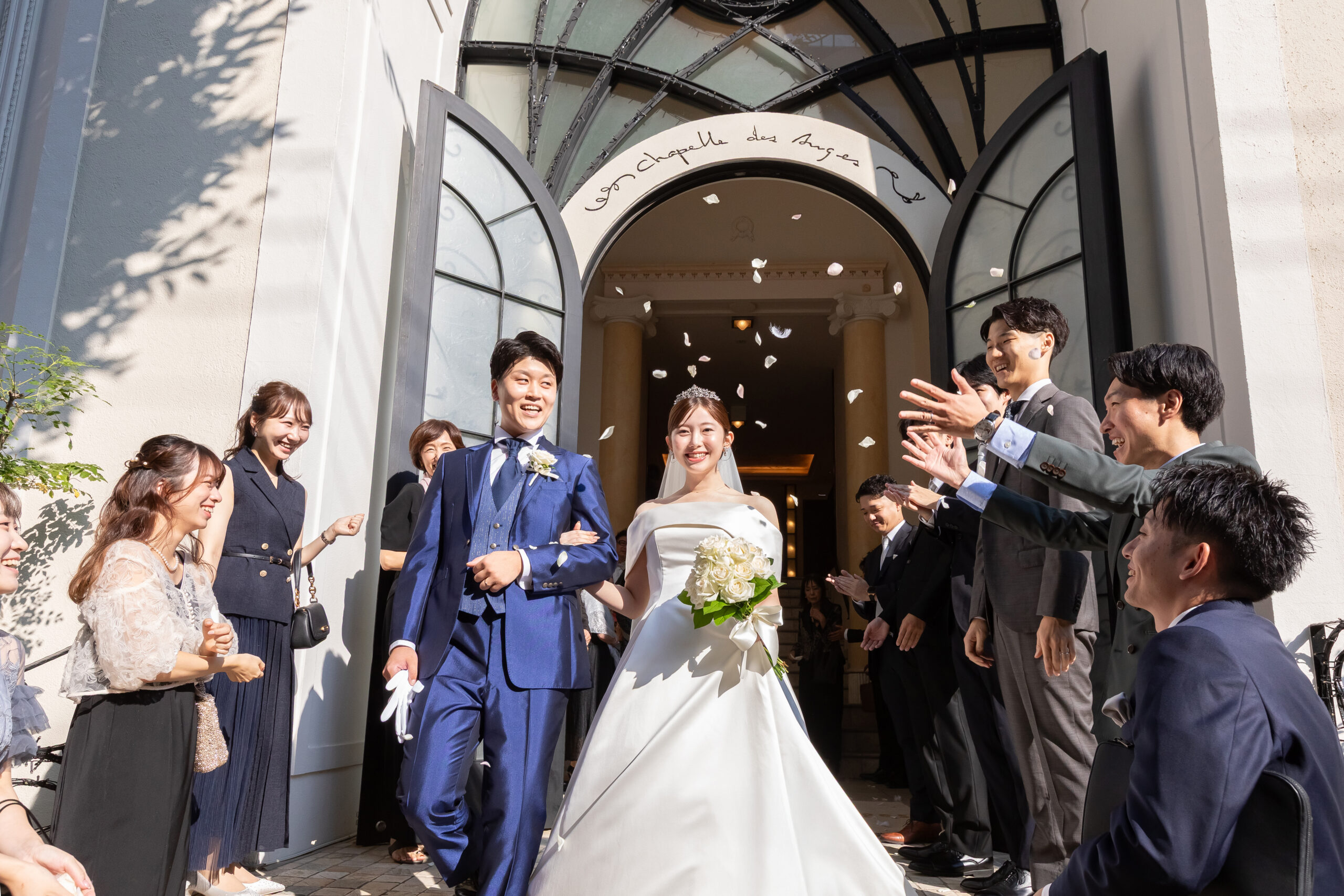 その後、フラワーシャワーとあたたかい拍手の花道を通ってお外での撮影もお楽しみいただきました