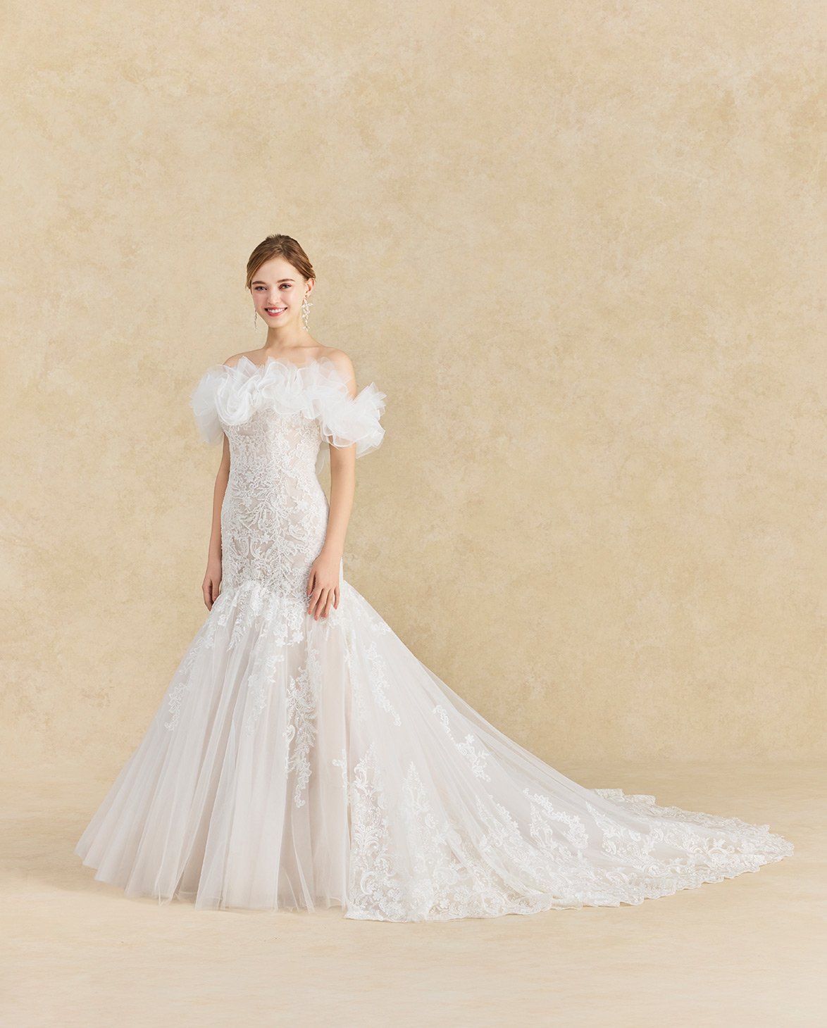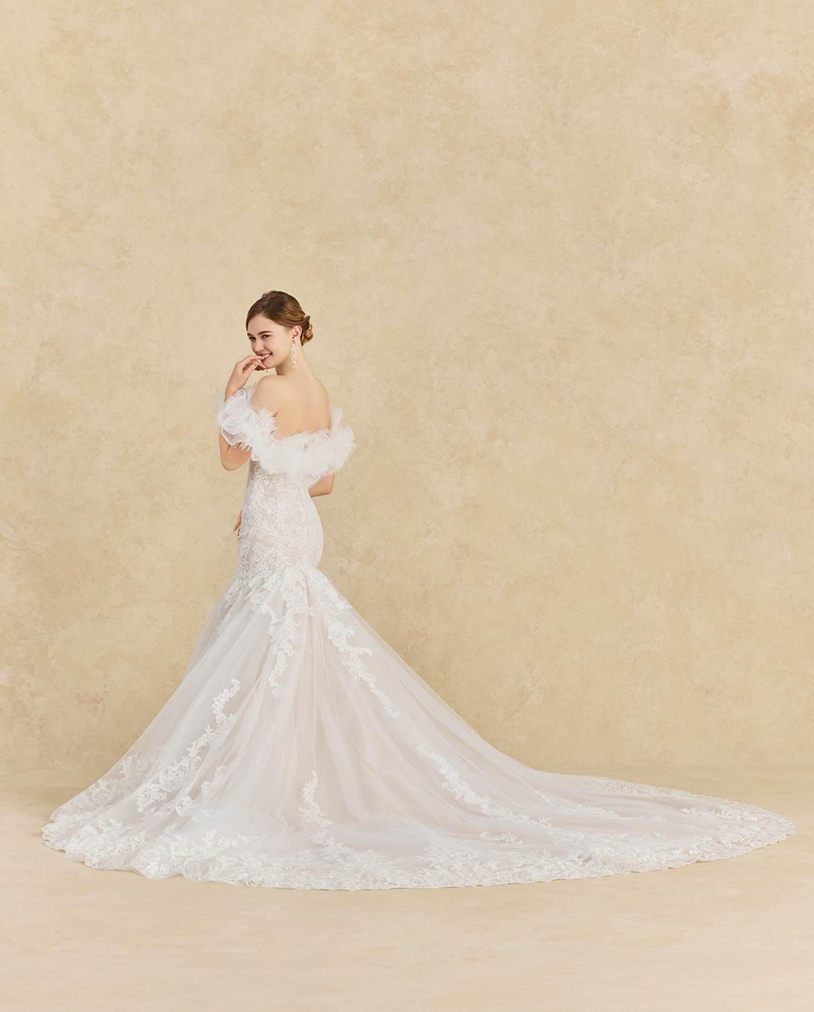 優雅さとモダンな美しさを兼ね備えたマーメイドドレスです